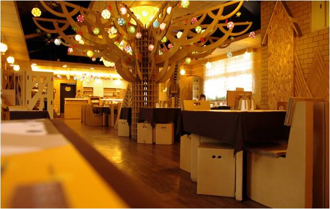 就地取材式的生態(tài)藝術創(chuàng)作使民宿有可能擺脫高投資,脫離世俗式的豪華星級酒店思維,例如桃米村就是利用生態(tài)元素、生態(tài)工藝、讓生態(tài)藝術元素充滿整個區(qū)域,形成一種視覺觀感。