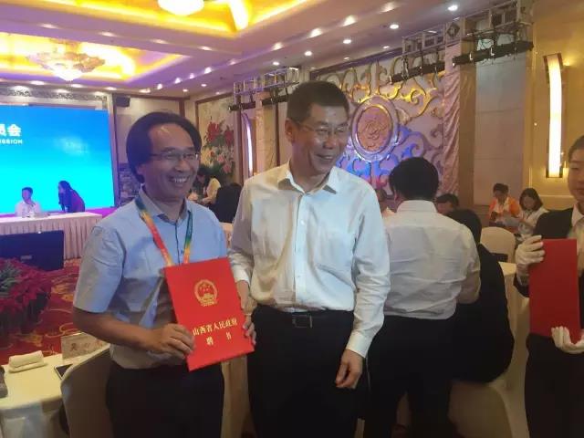 山西省副省長張復明為吳必虎教授頒發(fā)聘書
